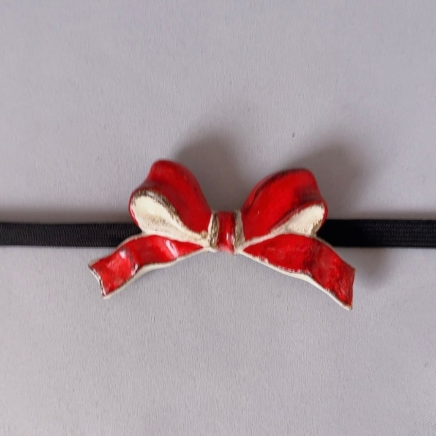 木製でできたイタリア製のリボンモチーフを帯留めにしました