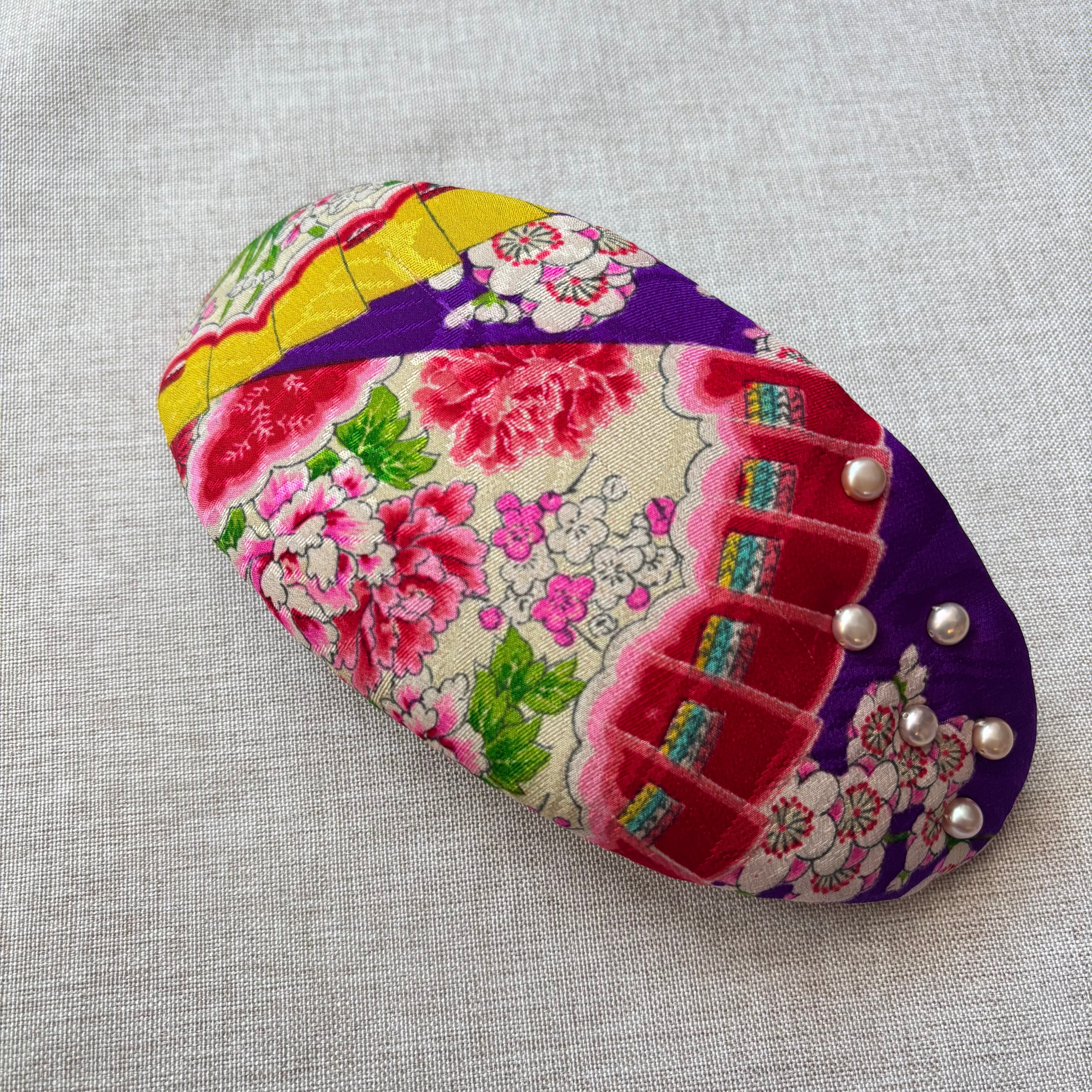 アンティーク生地ならではの目の覚める色彩配色に、マベパールおめかしいたしました