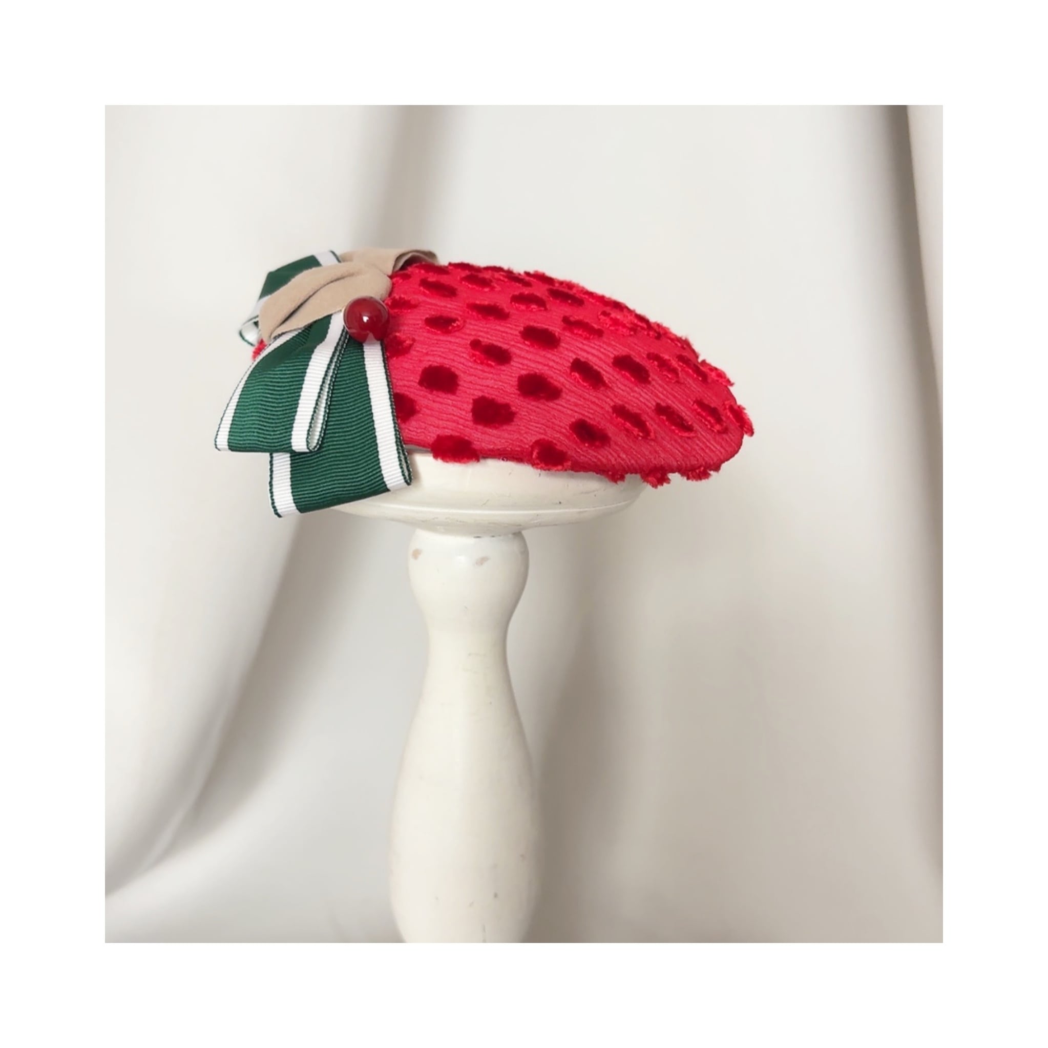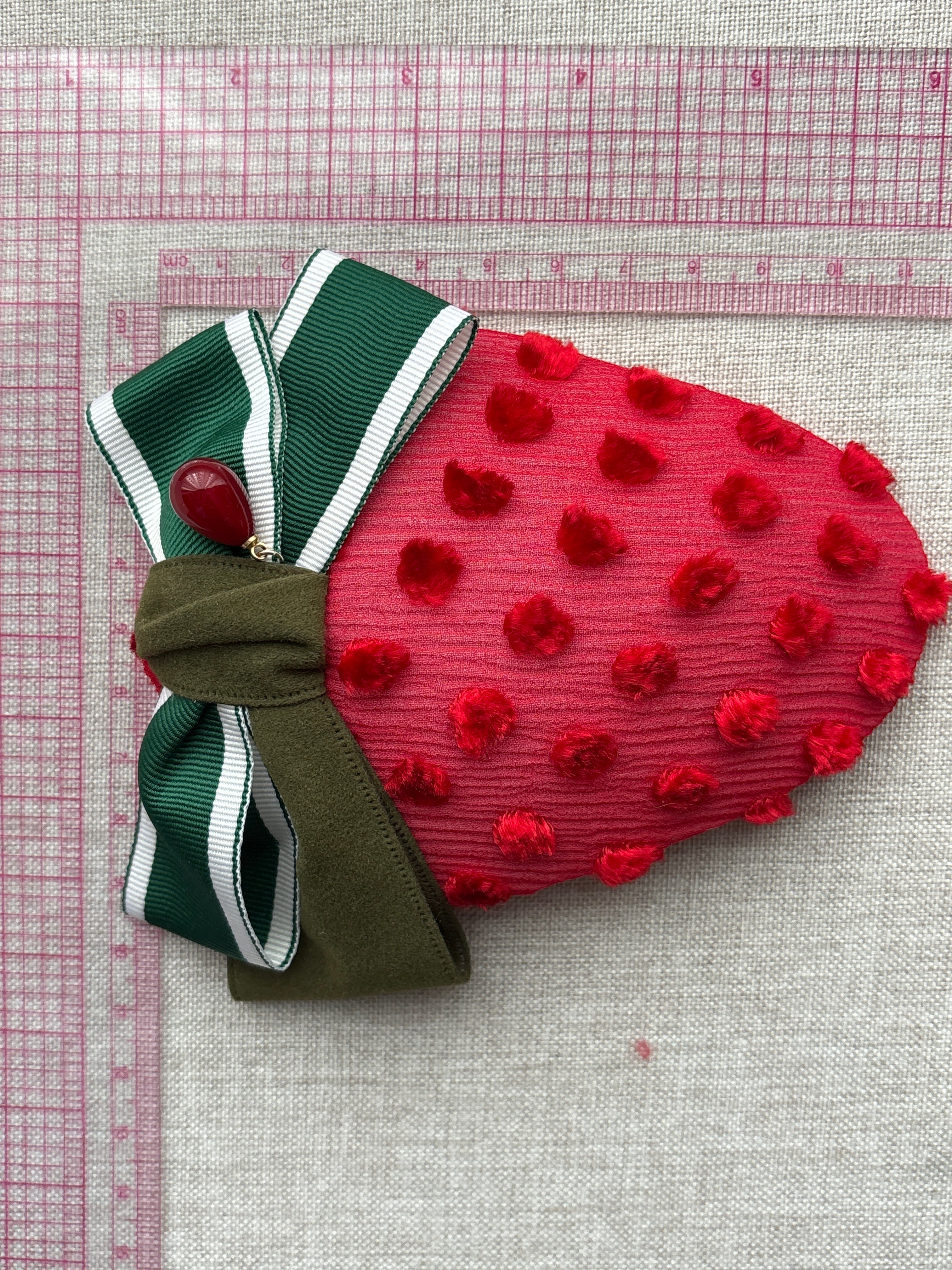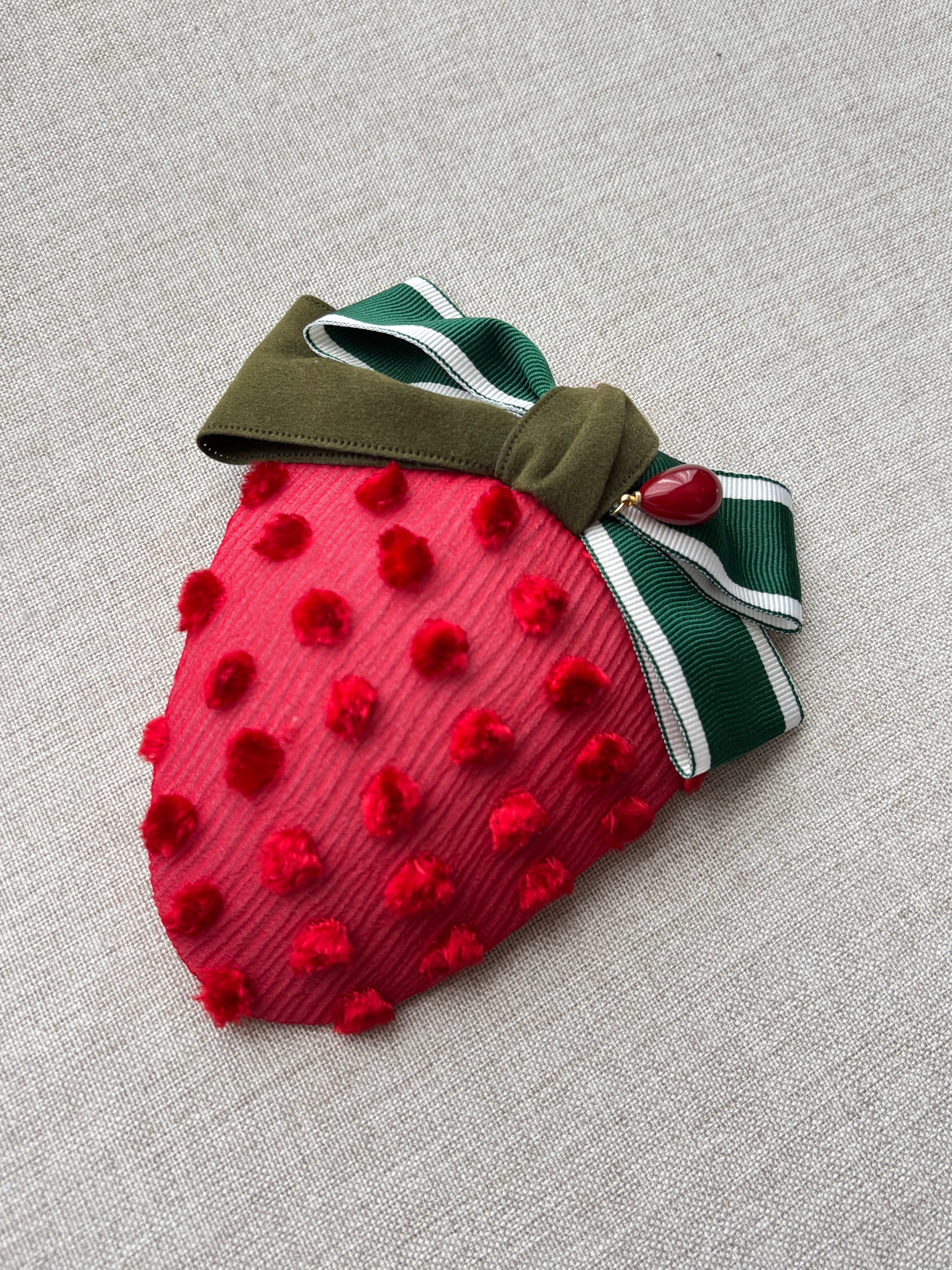 苺をイメージした髪飾りです クリップですので帯に挟んだり、お好きな場所を彩っていただけます サイズ(リボン含まず本体) 約11.5×9cm クリップ金具 6cm 重さ 約18g アフタヌーンティー フルーツコーデ strawberry